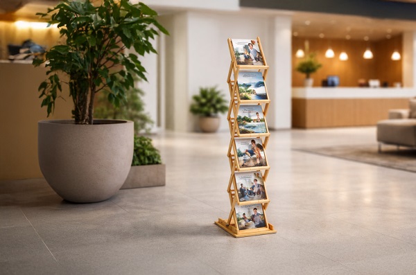 Uitklapbare brochurehouder Bamboe 5x A4 houder