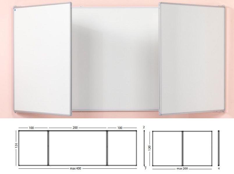 Whitebord met 5 schrijfvlakken van wit emailstaal (800C). Extra vleugels zorgen voor meer schrijfruimte. Geanodiseerd aluminium RC-profiel met grijze kunststof hoekstukken. Inclusief afleggoot. Optie tegen meerprijs een verrijdbaar onderstel. Zie voor meer informatie bijgevoegde PDF.